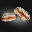 Норі, рис, лосось, крем-сир, огірок, ікра тобікко, темпура, сухарі панко, соус Спайс, соус Унагі, пластівці мигдальні