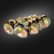 Норм, Рис,Крем сир,Смажений Лосось, Мікс Краба, Авокадо, Огірок, Темпура, сухарі Панко, соус Манго, соус Унагі, пластівці Мигдальні