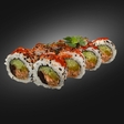 Норі, Рис, Смажений Лосось, Огірок, маринований Дайкон, маринований Гарбуз, Кунжут, соус Шрірача